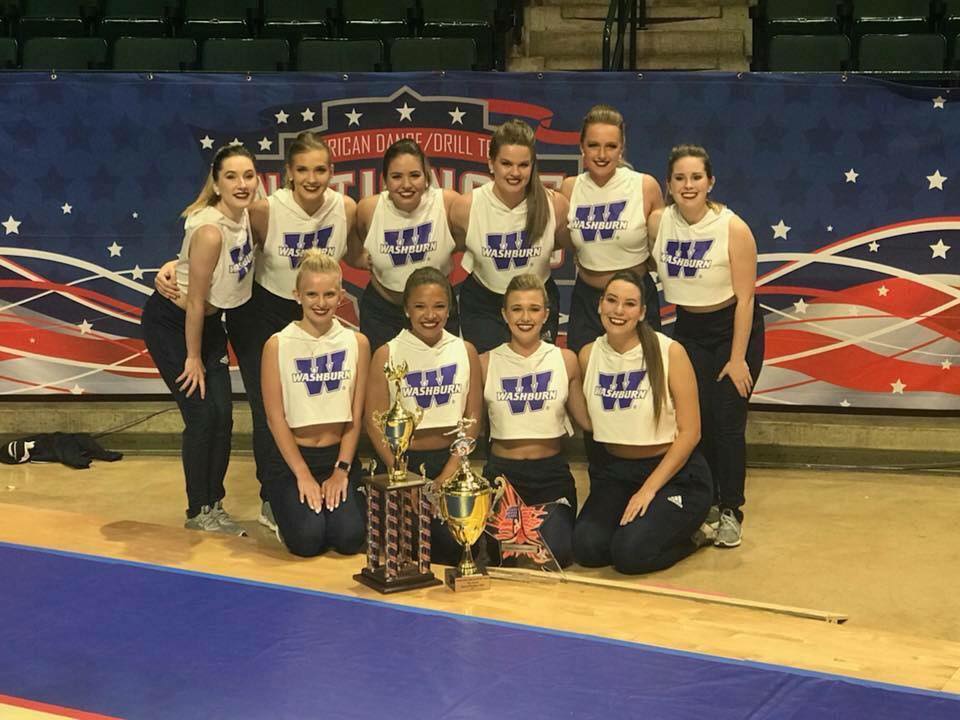 Angie Allendorf Price has coached the Washburn University Dancing Blues for over 33 years. In that time, she has helped Washburn secure national championships in five different years (2013, 2015, 2017, 2018, 2019) and has been the longest-serving active coach of a Washburn team. Angie is now retiring from coaching after 33 years of building team after team, choreographing dance moves, traveling hundreds of miles to compete and spending many hours putting rhinestones on costumes. Family and friends have created the Angie Allendorf Price Fund at the Washburn University Alumni Association and Foundation to honor Angie's time with the Dancing Blues. This fund will be used to support future Dancing Blues, the program and travel opportunities. A generous donation of $5,000 was given from an anonymous donor in her honor.